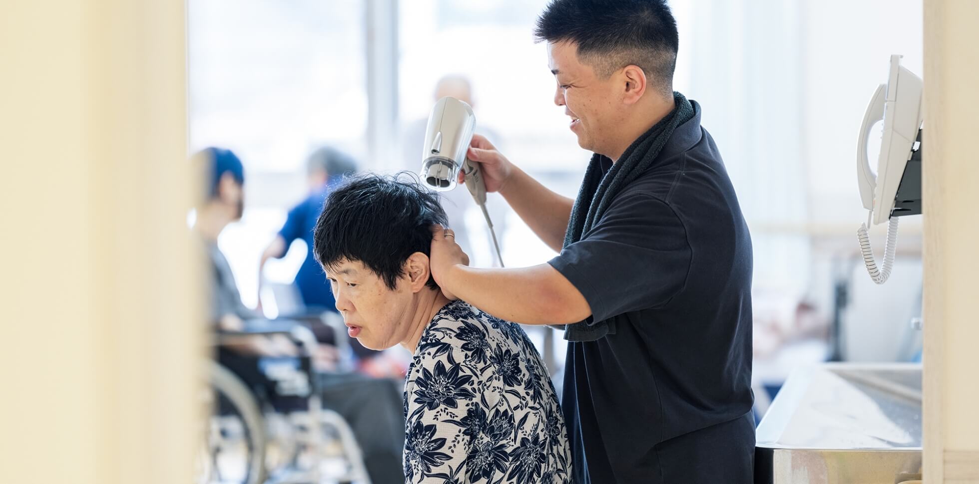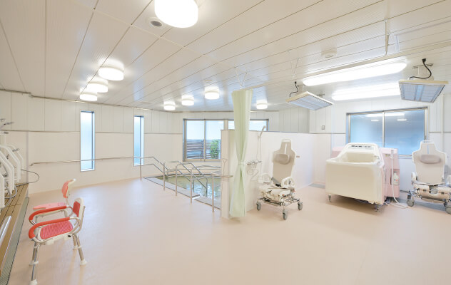 週3回以上の入浴を実施し、安心してゆったりと入浴できるように、用具の設置や設備の見直しを行い、利用者の身体状況や希望を考慮した上で、できる限り自立して清潔保持が可能となるように支援します。